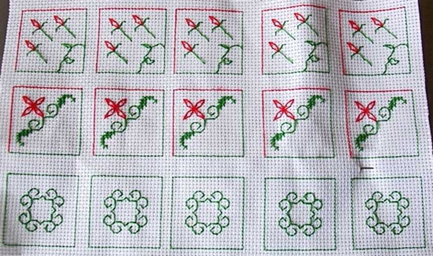 - в первую очередь, необходимо обшить квадратики бэкстичем, а затем вышивать узор;