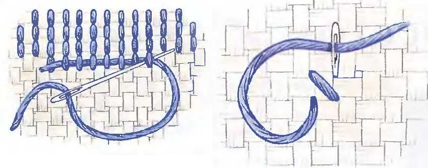 Чтобы нить не выскочила из канвы, используется фиксация петлей. Нить вдевают в иглу вдвое, а протягивают ее так, чтобы с лицевой стороны образовалась петелька. В нее пропускают иглу с нитью и слегка затягивают. Узелка нет, а крепление получается надежное. Можно не фиксировать нить, а оставлять длинный хвостик, который потом прячется в крестиках другого ряда.