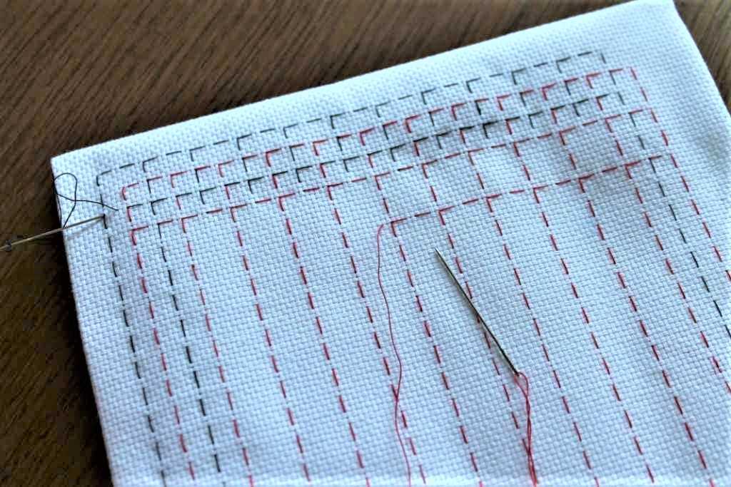 Некоторые заменяют мононить обычной рыболовной леской, но она жестковата для работы. Также можно использовать специальные нити, которые растворяются в холодной воде и не оставляют никаких следов. Вышивку с такой разметкой ни в коем случае не стоит гладить или стирать в горячей воде, иначе существует риск оставить на своем творении следы в виде равномерной решетки.