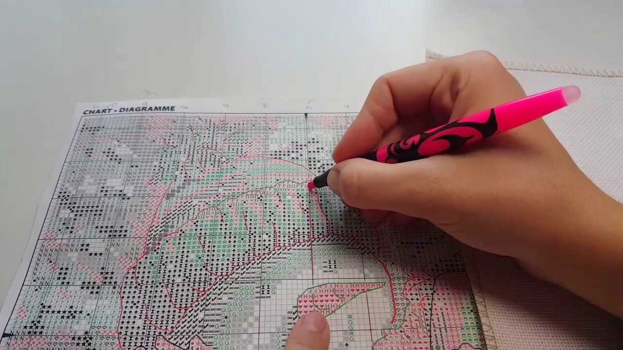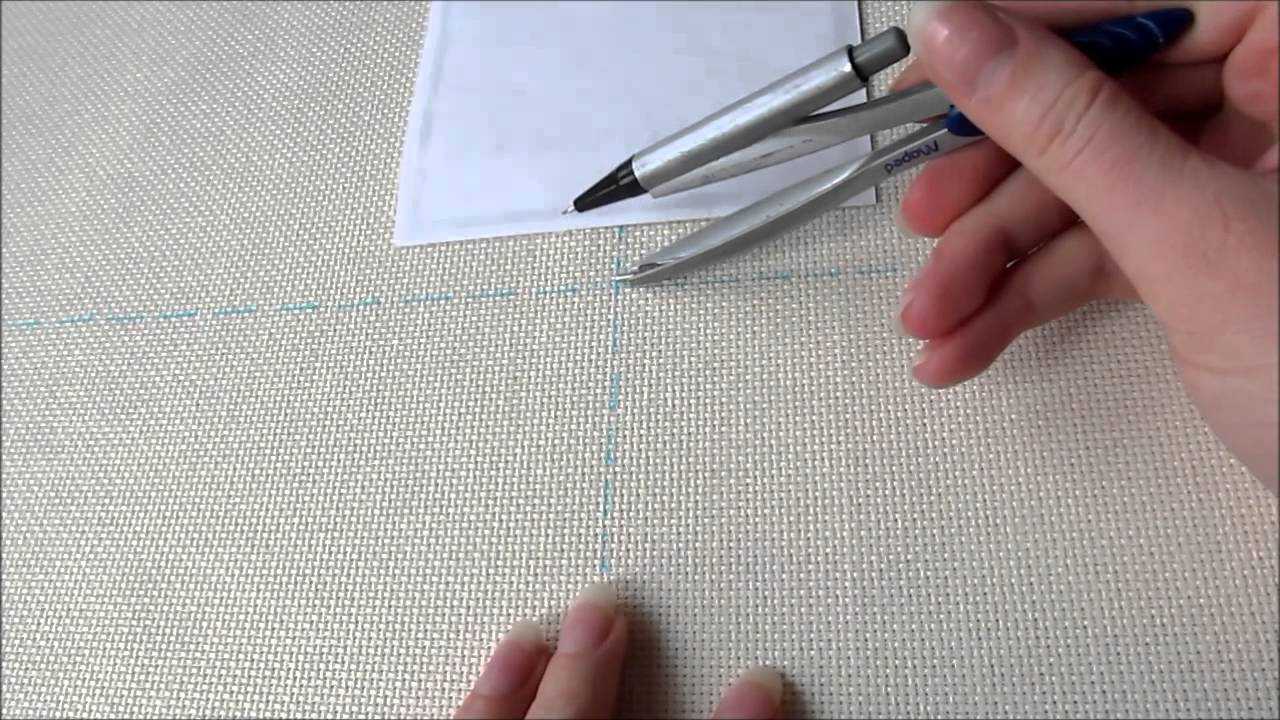 Разметка начинается с определения центра, его легко натйти при помощи сложения ткани в несколько раз, когда эта точка найдена, через нее надо провести центральные линии, вертикальную и горизонтальную. Далее по периметру канвы линейкой отмечаются интервалы, на которые вы хотите разделить работу, рекомендуется выбирать квадраты 10 на 10 крестиков. Некоторые советуют делить такой квадрат еще на четыре, то есть — 5 на 5. Лучше постоянно сверяться со схемой, относительно количества получившихся квадратов, иначе возможны такие ошибки, которые в конце работы невозможно будет исправить, например, нехватка канвы.