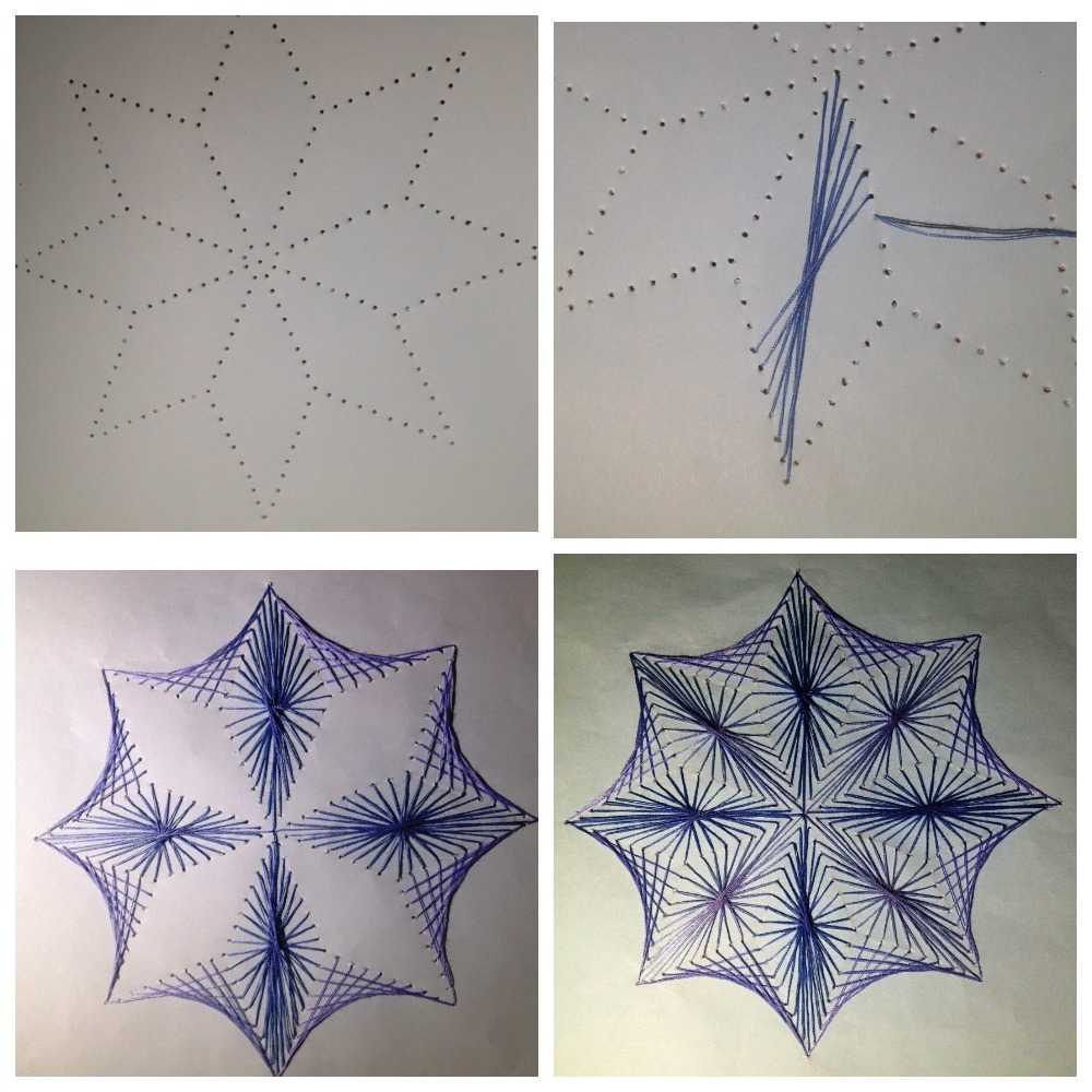 Наиболее удобными фигурами для вышивки изонитью будут ромбы или треугольники.