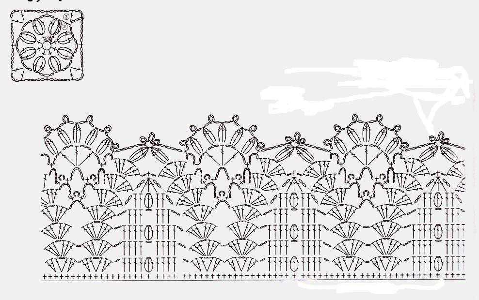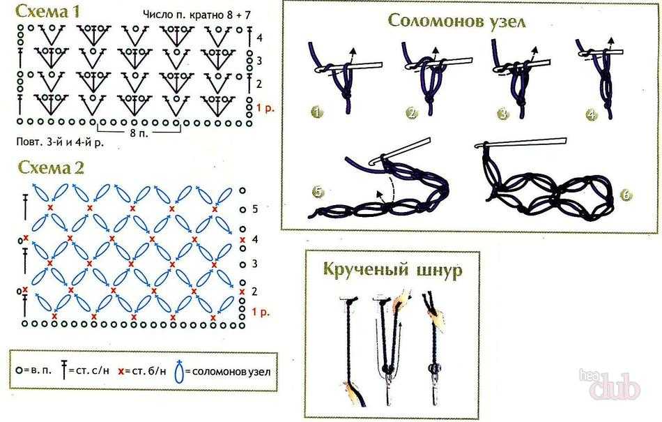 Еще один красивый узор со схемой и выполнением «ручного шага».