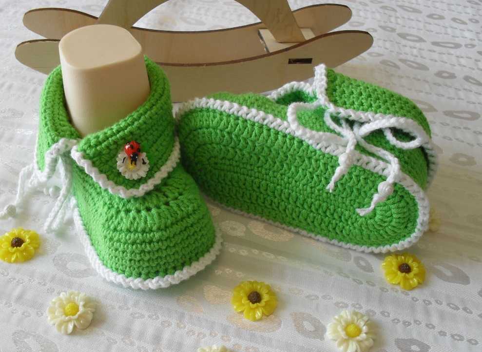 При рождении малыша каждый родитель задумывается, когда покупать первую обувь. Пока ребенок не ходит, ему не обязательно покупать туфельки или ботинки. Ведь можно обойтись симпатичными пинетками спицами, которые созданы руками любимой мамы или бабушки.