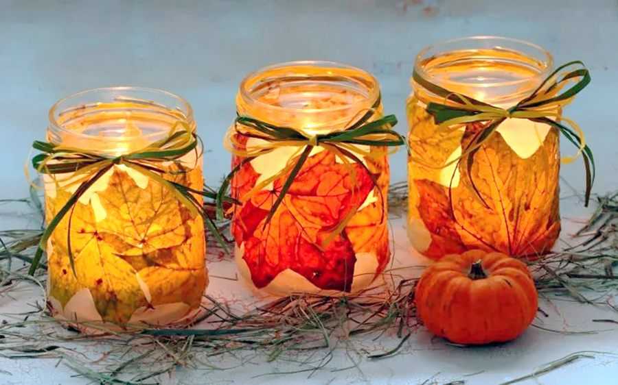 Желтые опавшие листья в подсвечнике помогут сохранить воспоминания о чудесной осени: