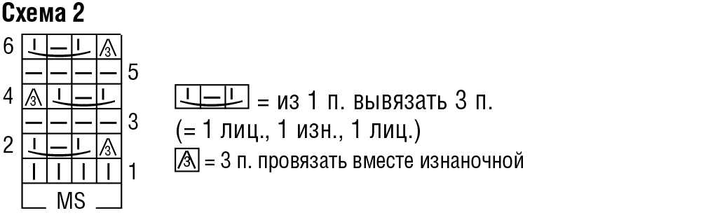 - пр — прибавка, т.е. в 1 столбик провязывается 2 столбика