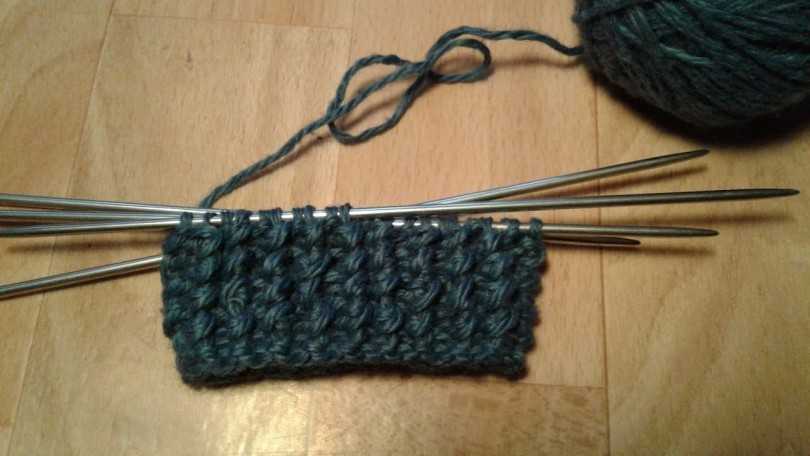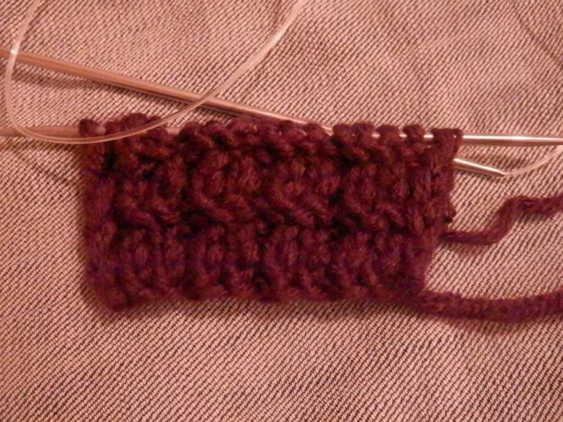- Спустя пять рядов прибавьте изнаночные петли. Получилась резинка 2х2.