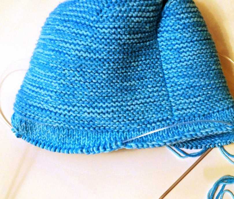 - Для отделки поднимите петельки по кругу шапочки и провяжите 15-20 рядов резинкой 1х1.
