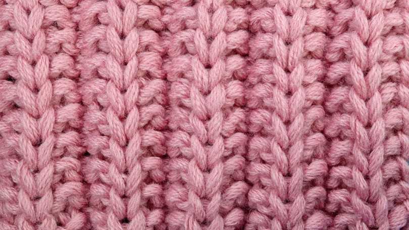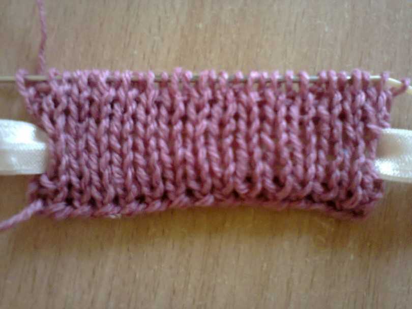 - Далее в каждом пятом ряду прибавьте по лицевой петельке. Получилась резинка 2х1.