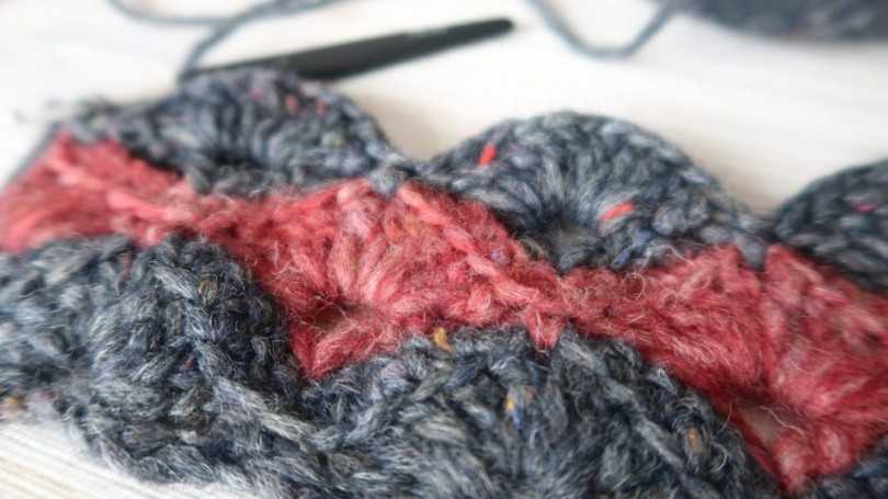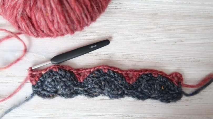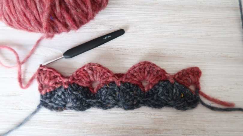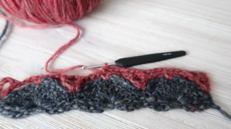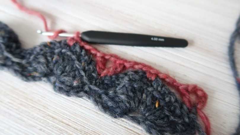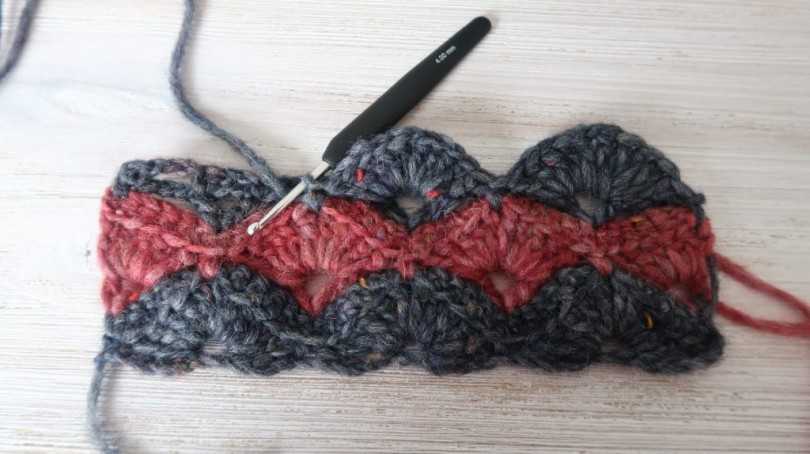 - Провязываем 4 ряда, а на 5-ом вяжем косички.