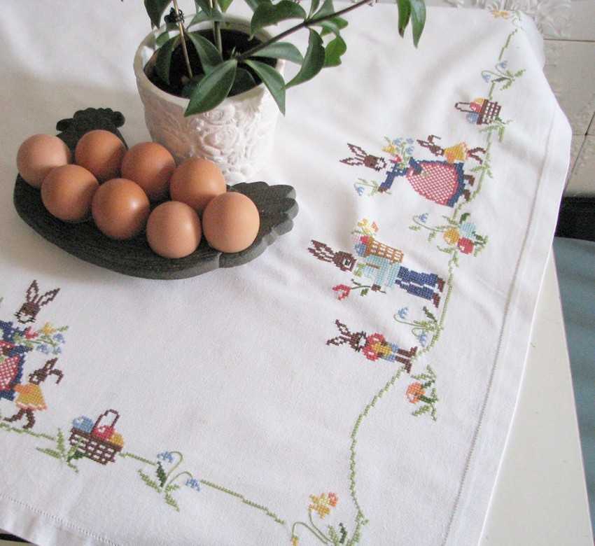 Для тех, кто не любит большие скатерти, подойдут узкие и длинные дорожки. Вышитые по краю полотна стелятся по центру стола. Секреты рукоделия для таких дорожек заключаются в том, что узор должен идти ровно по краю и быть не слишком крупным. Тогда такое изделие будет выглядеть красиво.