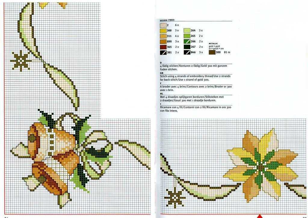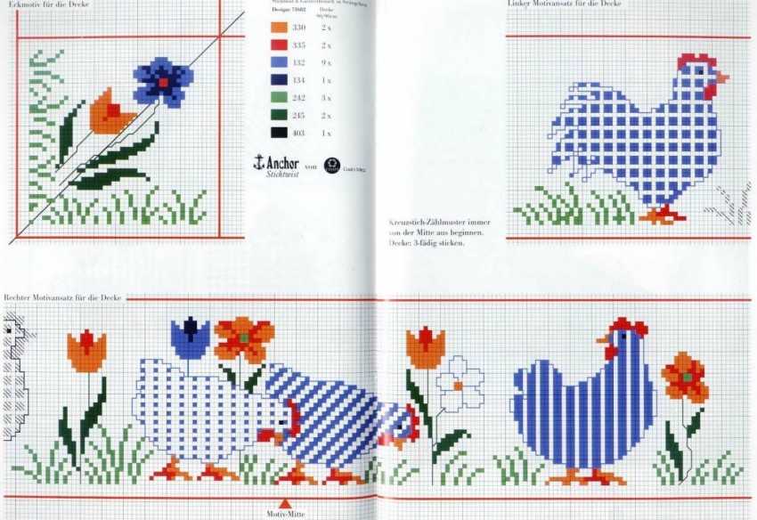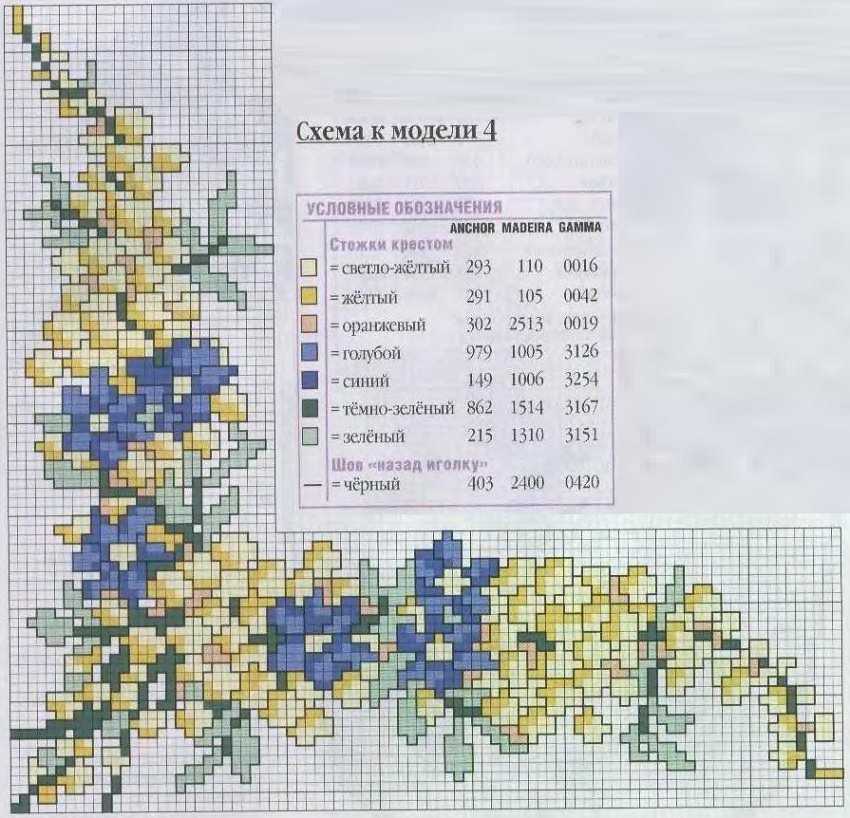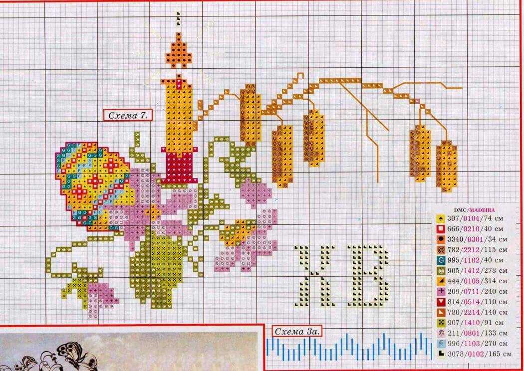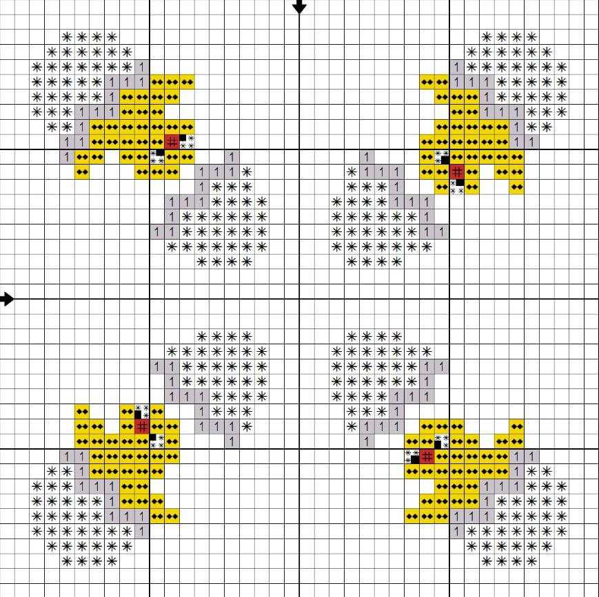 Рассматривая схемы, нужно учитывать, что каждый квадратик на них – это отдельный крестик. Вышивают их нитью мулине в два сложения.