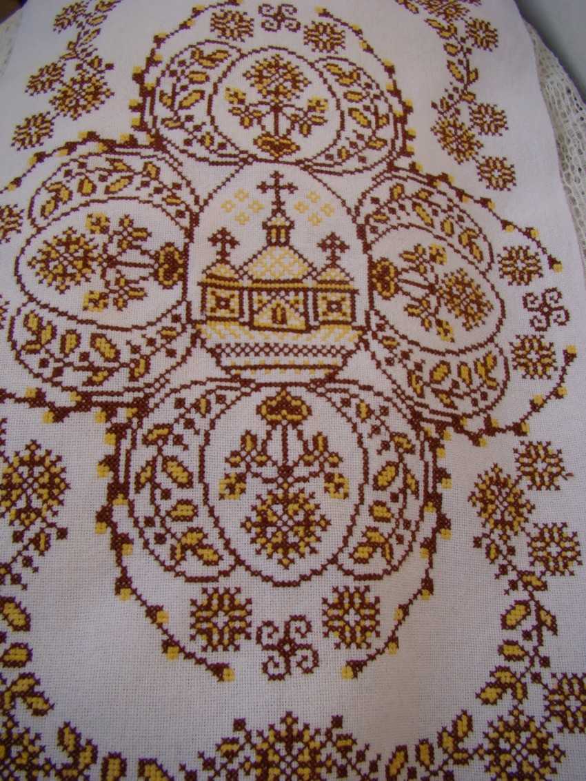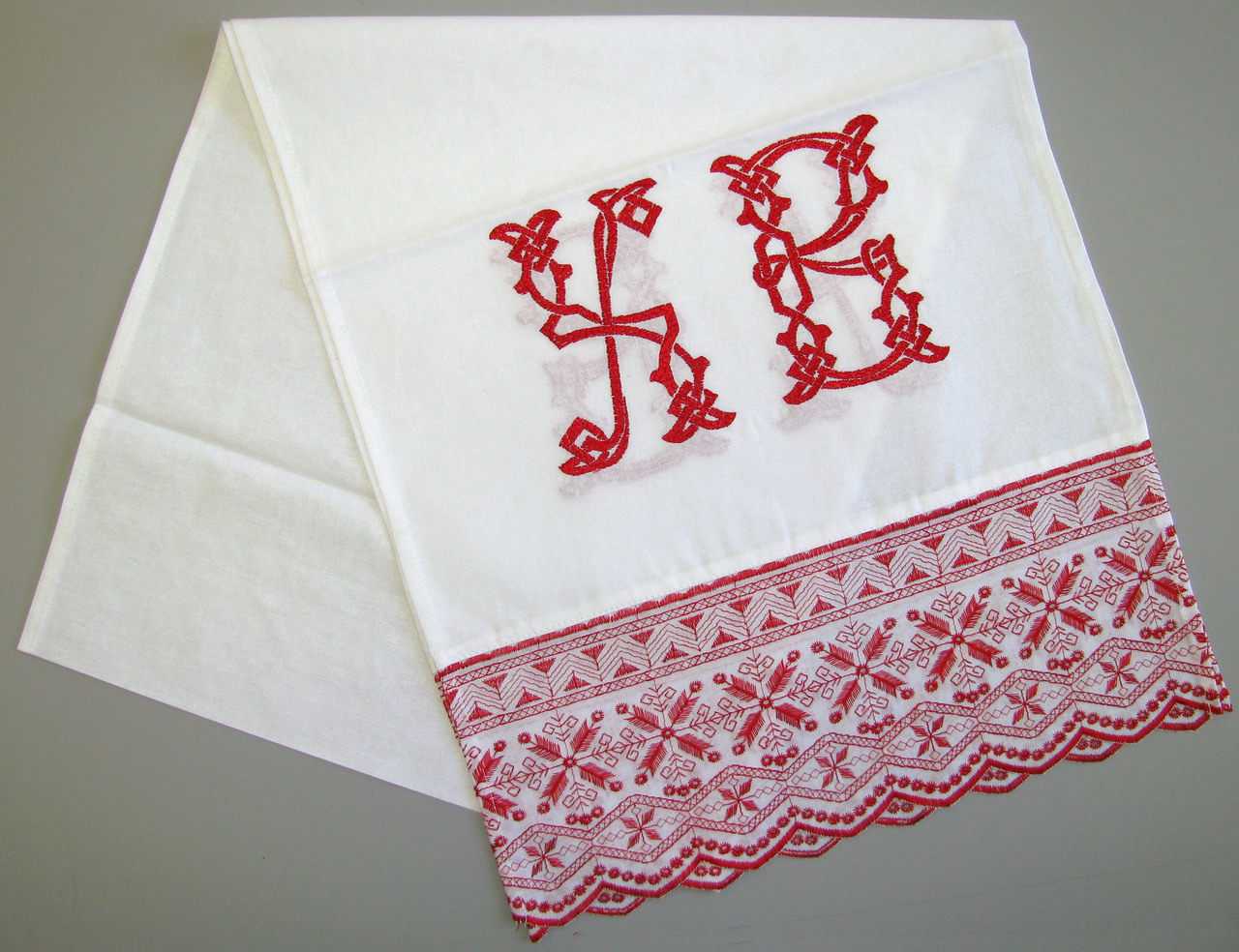 - вышивка крестиком. Только так, даже если вышит рушник с помощью машинки. Внимательно рассмотрите рисунок: он не должен быть набивным.