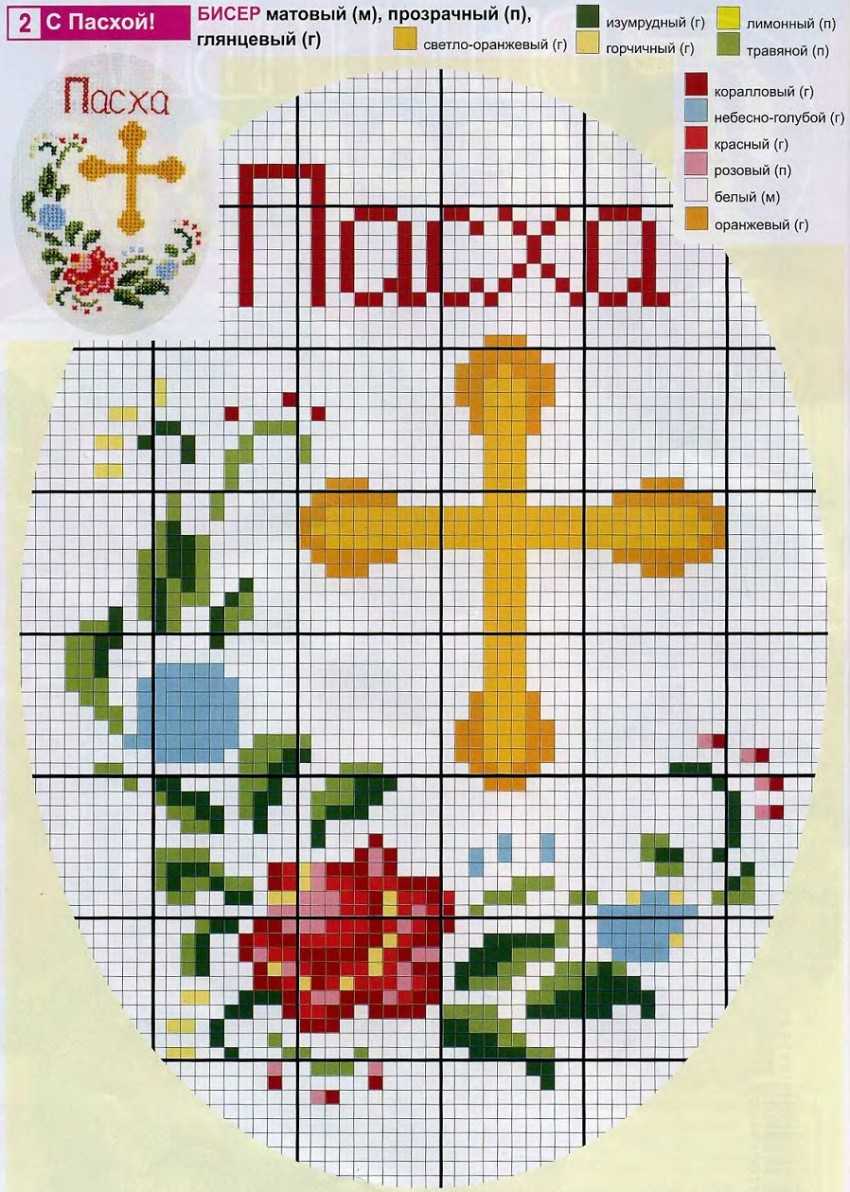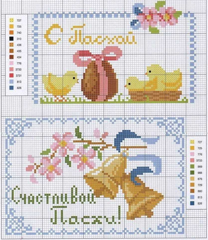 - Также можно использовать схемы для вышивки крестиком своими руками открытки на Пасху: