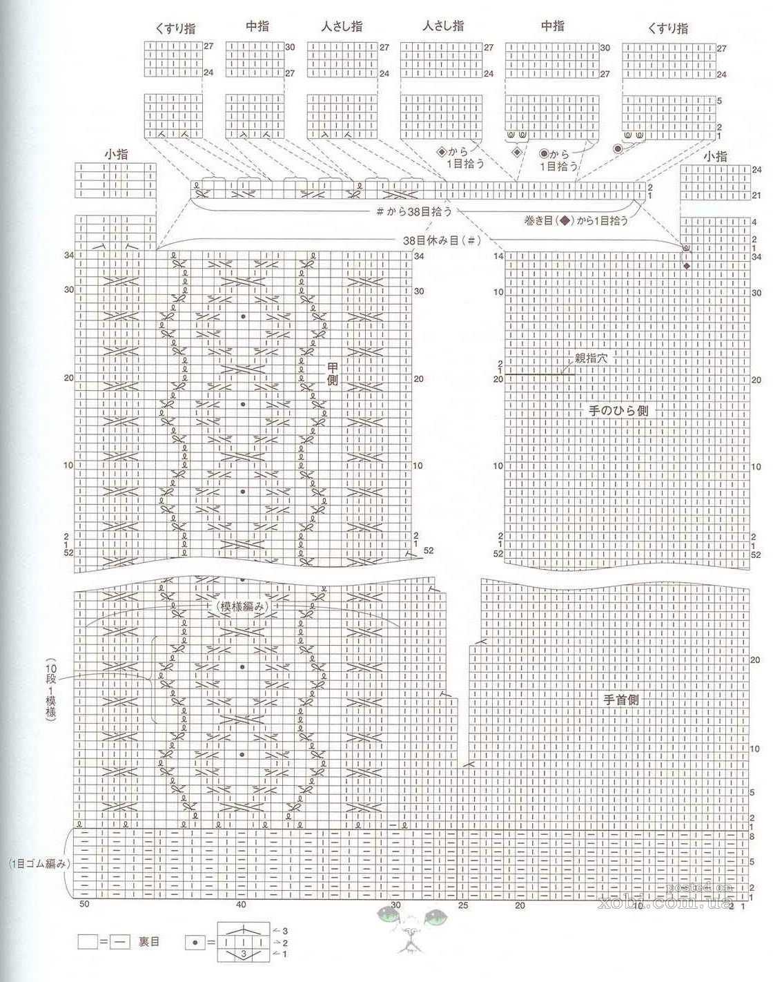 Схема перчаток с определением деталей и порядок работы смотрите на картинке ниже.