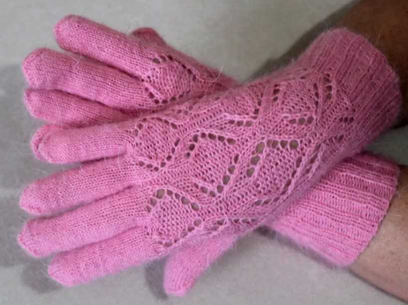 Определить необходимое количество петель для вязания перчаток бывает не так уж и просто, следуя прямому подсчету. Перчатки должны облегать руку довольно плотно, чтобы сидели красиво и их было удобно носить. Поэтому перчатки вяжут несколько уже, чем обхват кисти. На сколько именно уже — зависит от узора, от того, насколько он сильно растягивается, а также от эластичности пряжи. Иногда приходится несколько раз перевязывать, чтобы достичь хорошего результата. В нашем случае, когда перчатки вяжутся чулочной вязкой, достаточно принять для расчета величину, меньшую на 1 см, чем обхват кисти. Получим: (Ок — 1) x Пг = (20-1) x 2,7 = 51,3. Округлим результат до цифры, которая делится без остатка на 4, получим 52 петли, по 13 на каждую спицу.