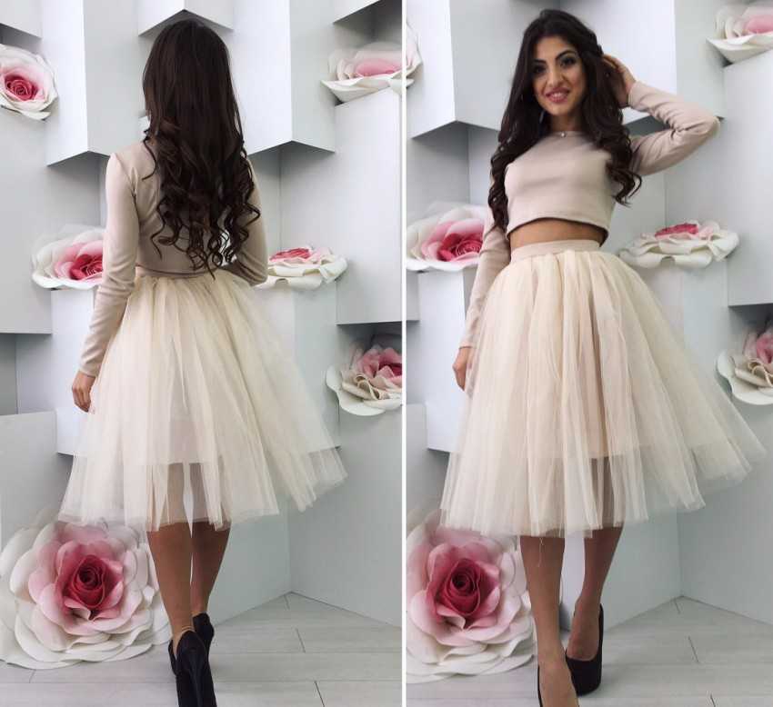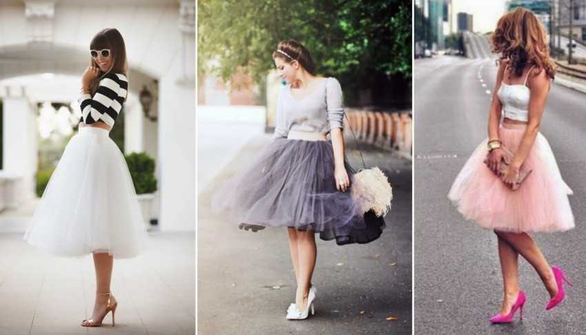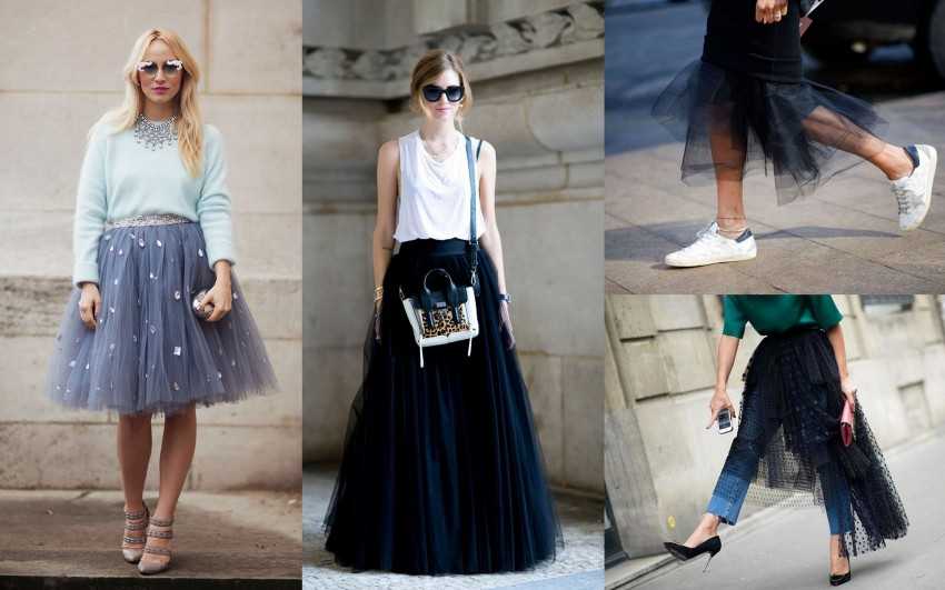 Преимущество фатиновой юбки заключается в том, что она отлично сочетается с кедами, туфлями, балетками и даже сланцами