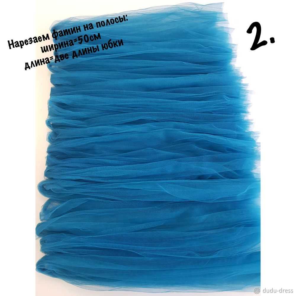 1. Юбка состоит из полос тюля. Чтобы определить их длину, умножьте желаемую длину готовой юбки на два.