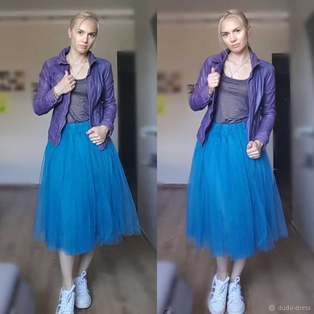 С кедами фатиновая юбка смотрится очень современно и стильно, поэтому станет идеальным вариантом одежды для дневных прогулок.