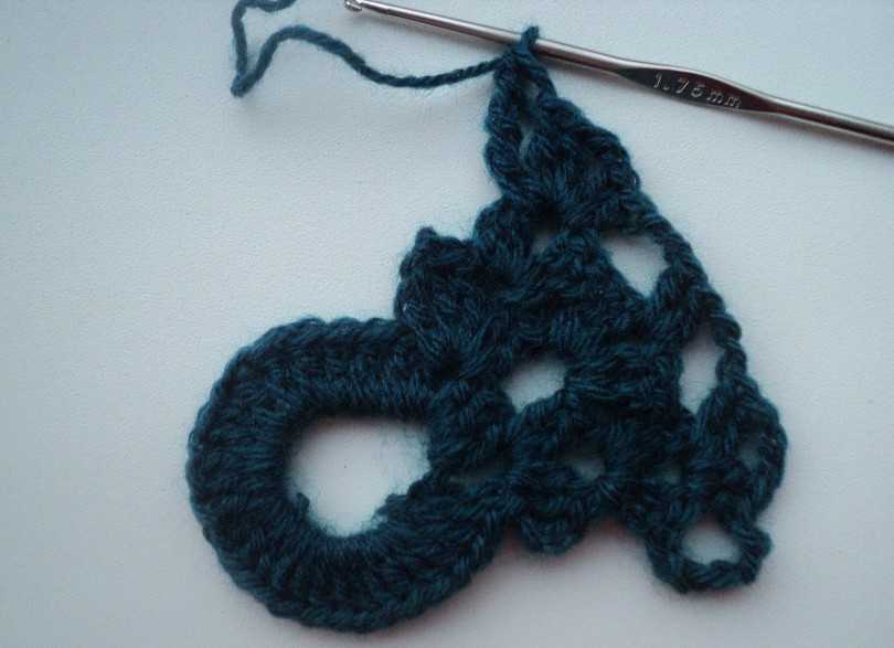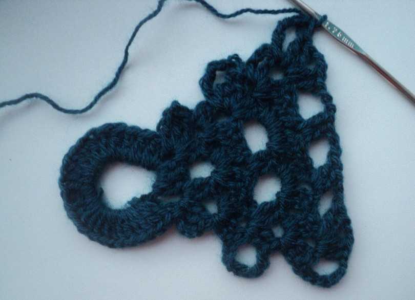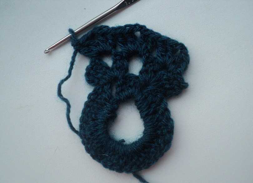 - Затем в каждую петельку по одному столбику, а в последнюю – 2.