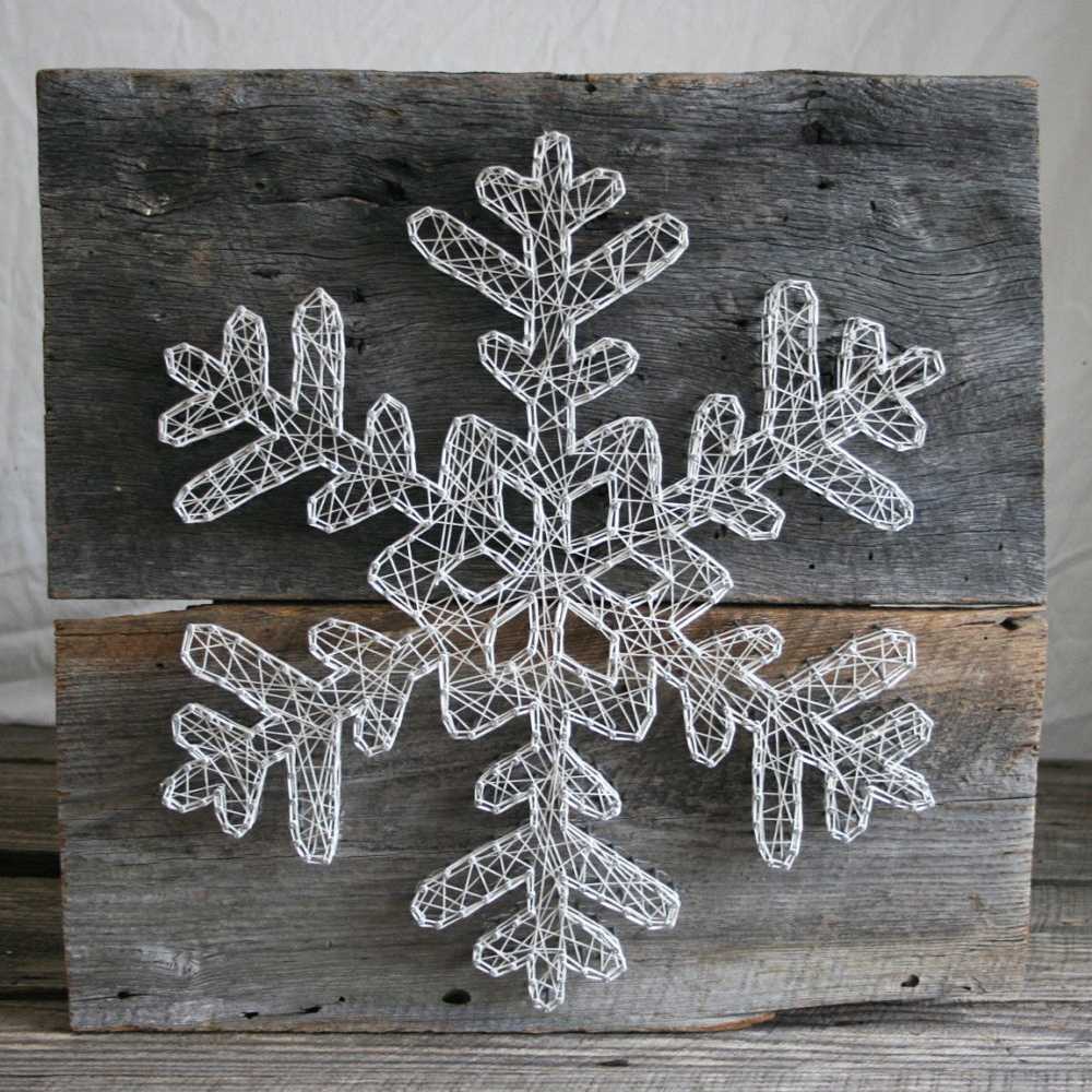 Отличной идеей поделки на Новый год станет картина из ниток и гвоздей или так называемый Стринг Арт (англ. String Art). Сделать такую поделку своими руками не сложно, если соблюдать простые правила безопасности во время забивания гвоздиков. Все, что Вам понадобится – деревянная дощечка, подходящий рисунок, гвозди, молоток, калька и нитки. Рисунок переведите на кальку, приложите ее к дощечке и закрепите, чтобы она не скользила. По контуру рисунка на кальке забейте в досточку гвозди, а после удалите кальку. Теперь осталось только заполнить центр рисунка нитями. Примерные новогодние схемы смотрите ниже: