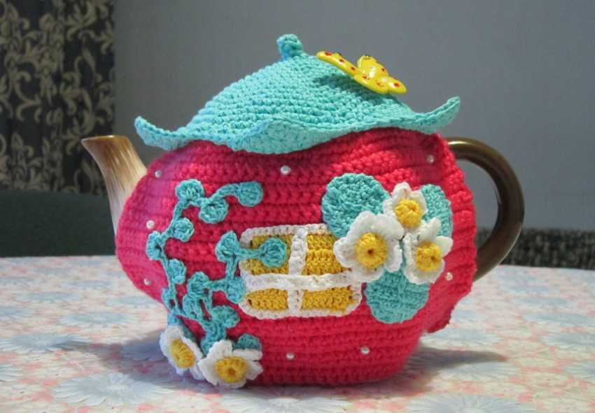 Как связать грелку на чайник крючком «Домик». Схемы и мастер-класс