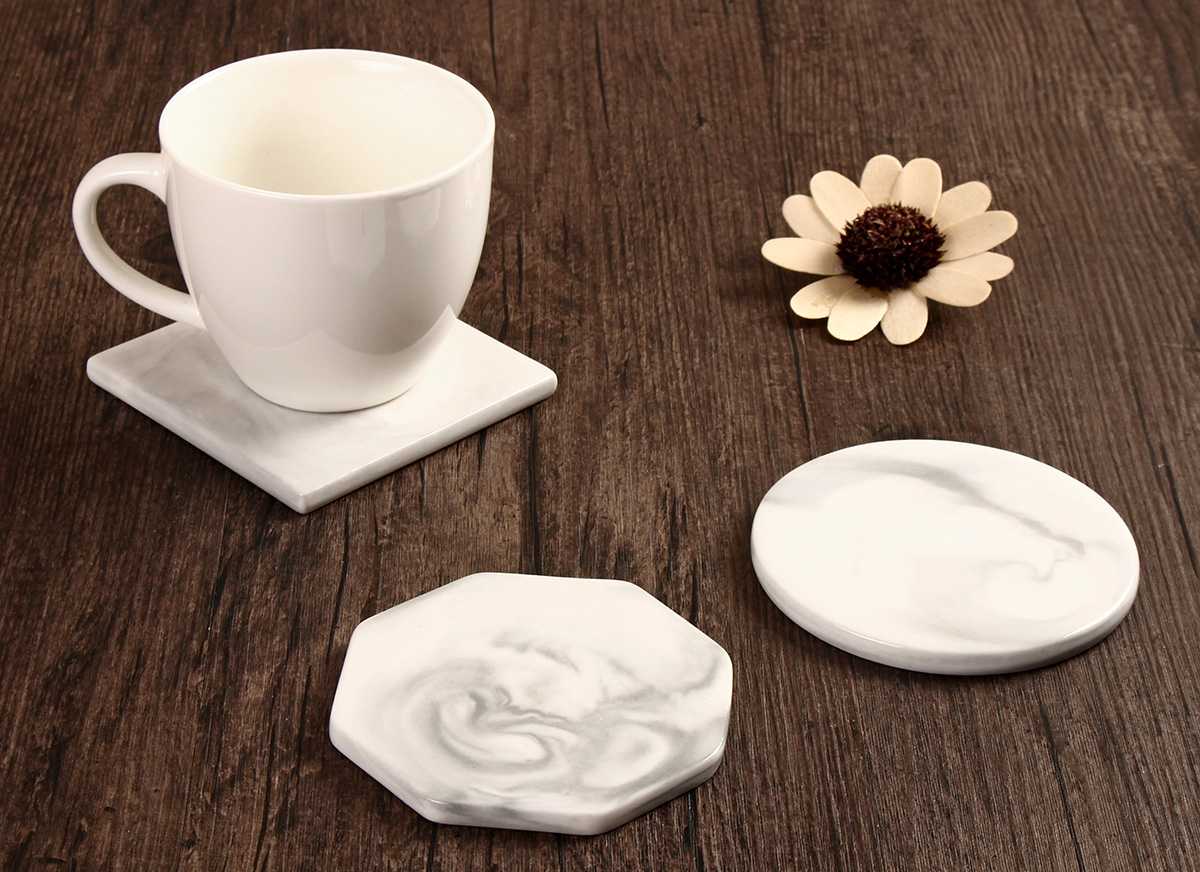 Форма изделий для дома может быть самой разнообразной: круглой, квадратной. Есть и оригинальные вещи, например, на новогоднюю тематику, детские подставки в виде каких-либо фигурок. Такие предметы красиво смотрятся, но подходят далеко не к каждой чашке.