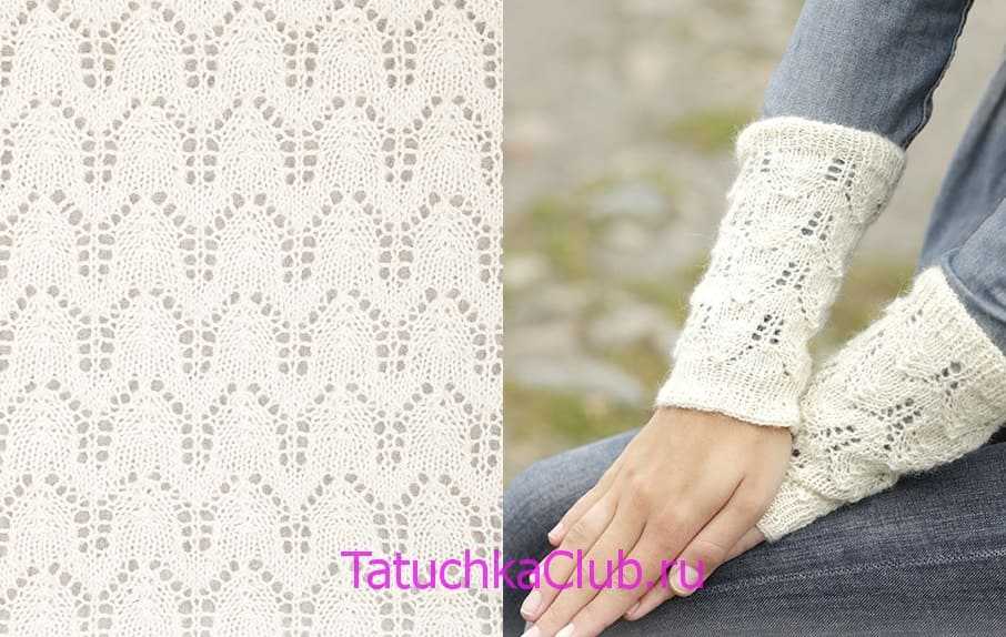 В первом ряду все петли провязываются лицевыми. Во втором – лицевые чередуются с накидами, ряд следует закончить просто снятой петлей. В третьем ряду поочередно провязываются лицевые и снятые непровязанные накиды, закончить ряд нужно лицевой петлей. Четвертый ряд начинается с накида, следующую петлю снимаем, не провязывая, петлю с накидом вяжем лицевой. В пятом – чередуем две лицевые со снятым накидом. В шестом – петлю вместе с накидом вяжем лицевой, затем один накид, одну петлю, не провязывая, снимаем. Седьмой ряд выполняется, как третий. Далее идет повторение 3-6 рядов.