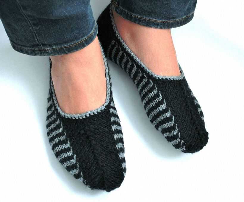 Подборка схем и описаний для вязания тапочек спицами без шва