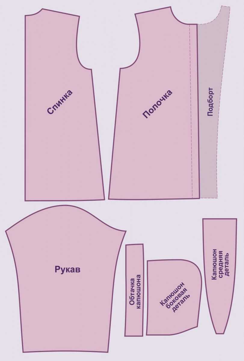 - Детали рукава и брюки шьются вдоль длинной секции.