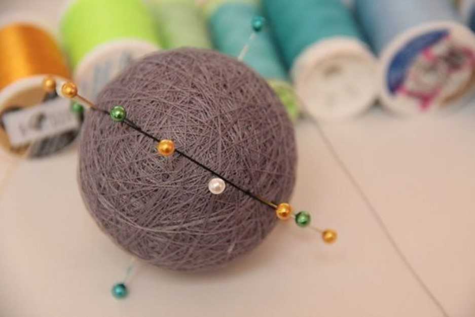 Для того чтобы заниматься этим искусством, понадобятся и специальные инструменты. А именно швейные иглы разного размера, булавки, а также что-то для отметки основных фигур на поверхности шара (мел, карандаш).