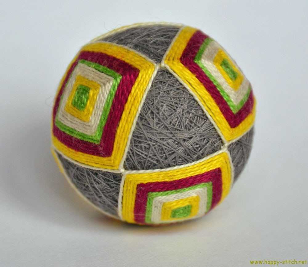 Посмотрите, как сделать шар темари. Для начинающих отлично подойдёт этот мастер-класс, так как здесь показывается, каким образом нужно разделить шар на 12 секторов для дальнейшего декорирования, чтобы они получились ровными.