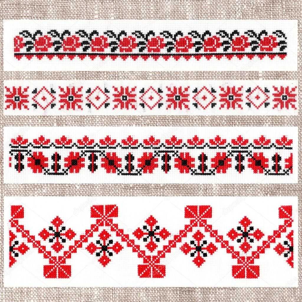 Можно пользоваться и схемами, которые будут представлены в этой статье или купить (найти) на просторах интернета другие. Приобрести можно и набор, состоящий их чистой скатерти, нитей мулине и подловленных схем для вышивки и объяснений. Они прекрасны тем, что в них уже рассчитано количество ниток определенных цветов. Среди частоиспользуемых узоров особо выделяются: