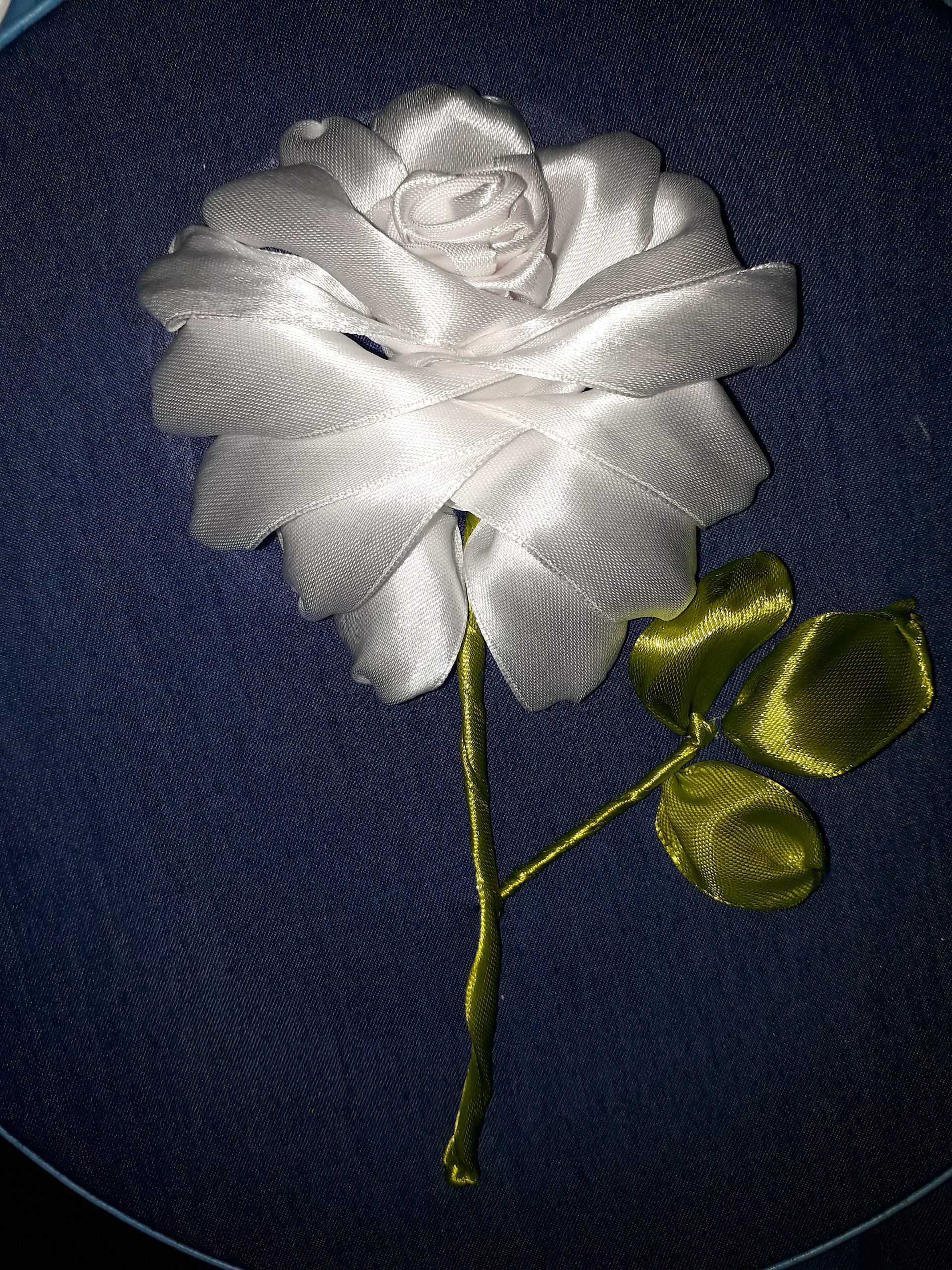 Розу можно оставить белой, а можно затонировать при помощи акриловых, акварельных красок или специальных по ткани, тогда можно получить самые шикарные картины, поражающие своей натуральностью и сходством с живым растением.
